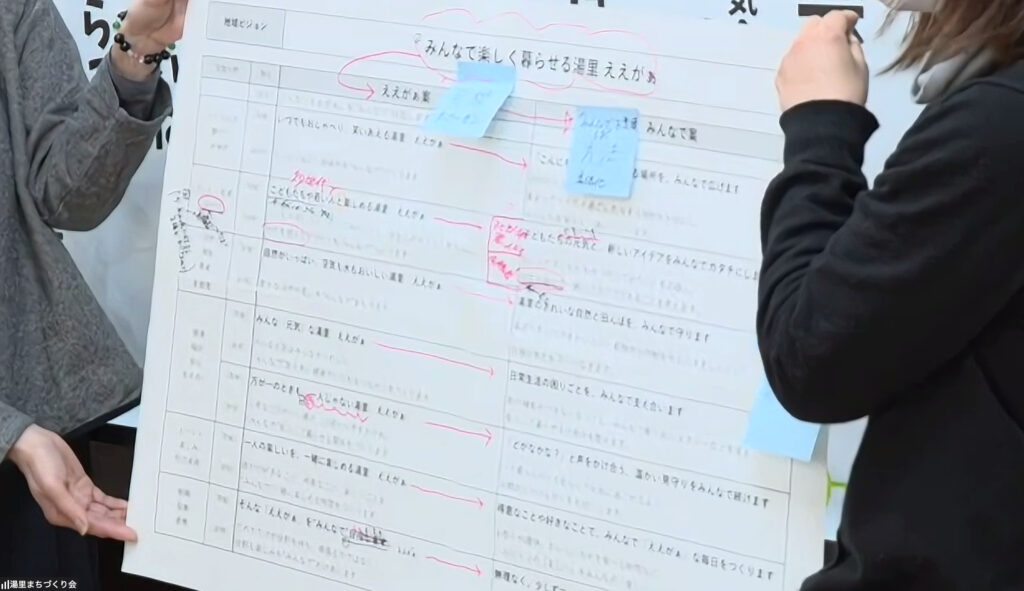 これに先んじて、昨年9月から12月までの間、島根県にて3回にわたり対面で「地域づくりの設計図を描く実践講座 〜対話・ビジョン・計画作成の基本を学ぶ〜」講座を開催ていますが、宅野地区と湯里地区についてはさらに個別のフォローアップを行い、単なる学びにとどまらず、ビジョンを具体化する作業を進めています。